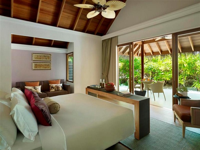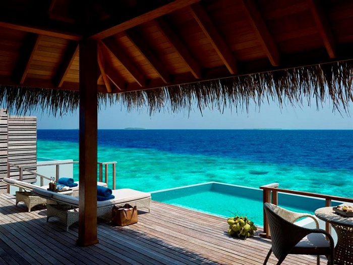 2 Ocean Pavilions with Pool (370 кв. м) - расположен над водой в лагуне, состоит из 2 спален, крытых и открытых гостиных и обеденных зон, ванных комнат, душа на открытом воздухе, террасы с зоной отдыха, персональным бассейном и спуском в лагуну. Максимальное размещение - 4 взрослых.