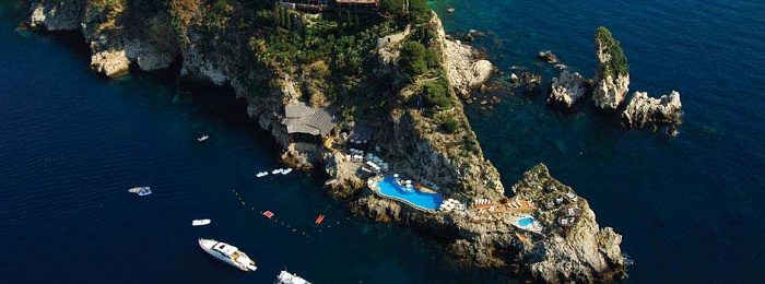 "Место, где море встречается с небом" - именно так можно сказать о местоположении уникального отеля Atahotel Capotaormina у подножья Таормины. Если обычно этажи отелей поднимаются вверх, то этажи данного отеля опускаются от вершины высокой скалы к берегу моря, так как отель построен на краю выступающего в море мыса. Обновлен в 2009 году.