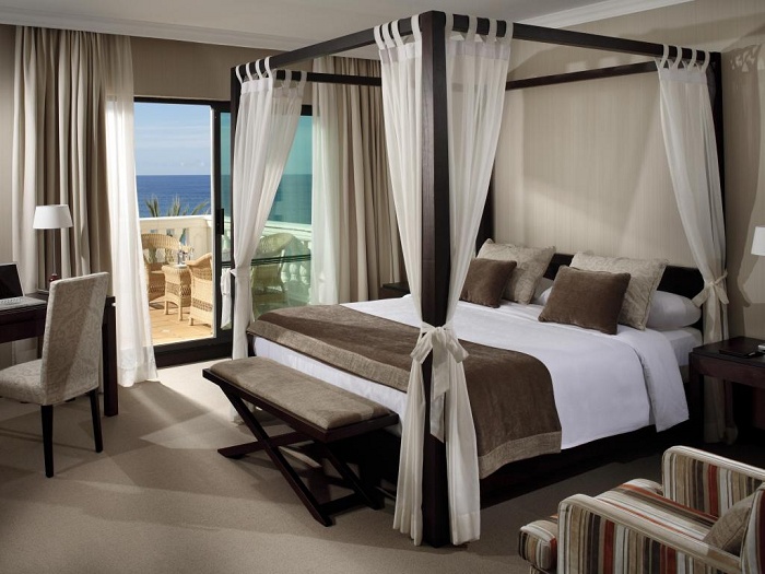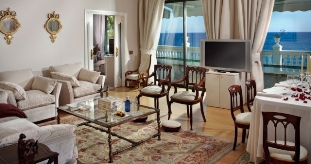 Suite (50 кв. м) - состоит из спальни с двуспальной кроватью с балдахином, гостиной, ванной комнаты, террасы. Вид на море.
