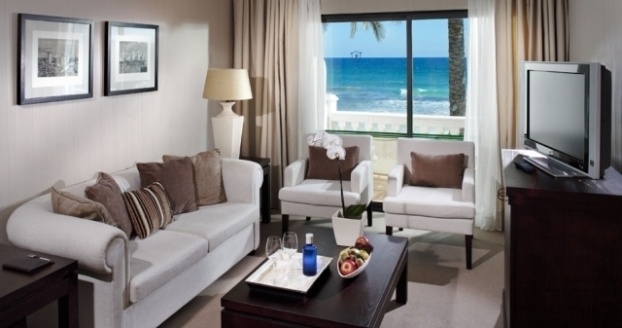 Family Suite (70 кв. м) – состоит из 2-х спален (одна – с двуспальной кроватью, вторая – с двумя односпальными кроватями), гостиной, кухни, 2-х ванных комнат, террасы. Вид на море. Макс. размещение – 4 чел.