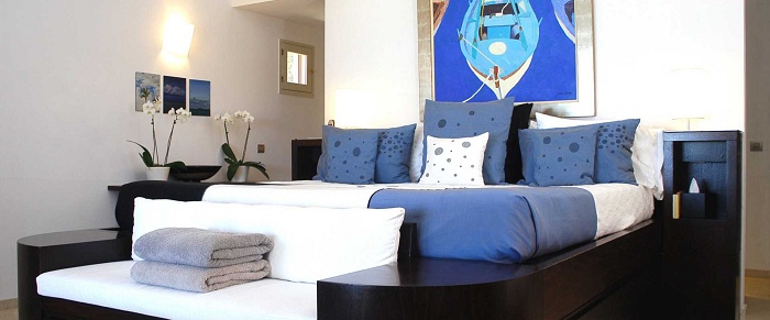 James Suite - состоит из спальни с мебелью ручной работы, гостиной зоны, просторной ванной комнаты с ванной и каскадным душем, меблированной террасы с частным бассейном и зоной джакузи. Расположен у подножия холма, около пляжа.Вид на море.