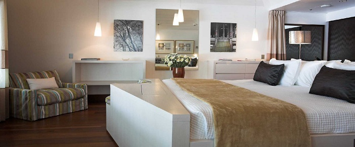 Greta Garbo Suite - номер в стиле 30-х годов. Состоит из спальни, гостиной зоны, ванной комнаты, просторной меблированной террасы с панорамным видом на море. Расположен на утесе.