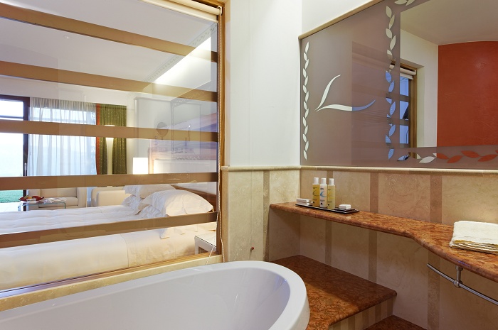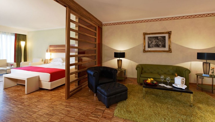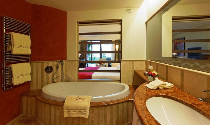 Executive Suite (83 кв. м) - состоит из спальни с кроватью king-size, гостиной, обставленной итальянской дизайнерской мебелью Poltrona Frau, ванной комнаты с душевой кабиной, джакузи и окном с видом на озеро, отдельной туалетной комнаты, большой гардеробной, террасы с частным садиком или балкона с видом на озеро Гарда.