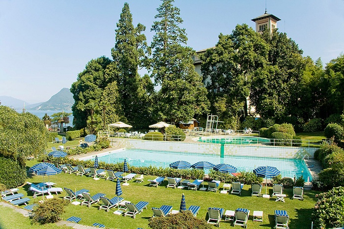 в городе Стреза, на берегу озера Лаго-Маджоре, в 45 км от аэропорта Милана Мальпензы.
