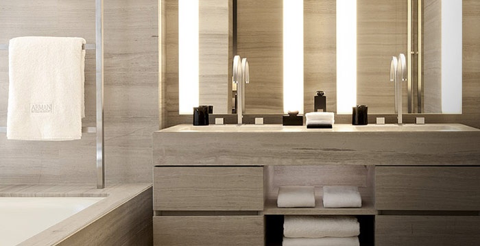 24 Armani Deluxe Rooms (45 кв. м) – состоит из спальни, ванной комнаты, отделанной мрамором. Расположены со 2-го по 5-й этаж.