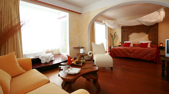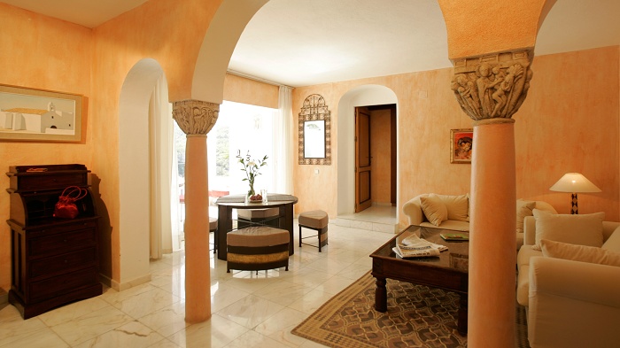 Suite Rubio – состоит из спальни с двуспальной кроватью, ванной комнаты, турецкой бани, террасы с бассейном. Номер оформлен в этническом стиле. Возможно размещение детской кроватки. Вид на море.