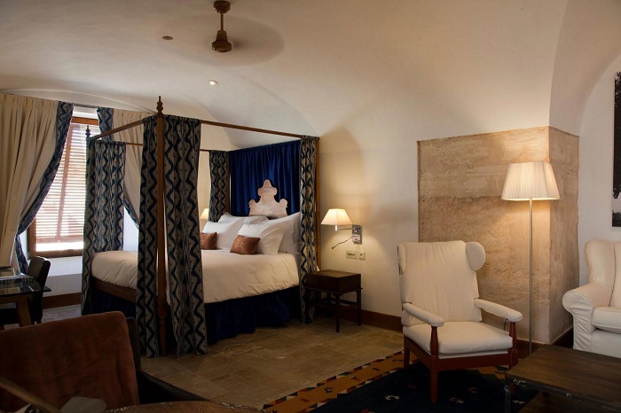 • Suite El Cabo (140 кв. м) – состоит из спальни, гостиной, ванной комнаты с ванной и душем, отдельного салона с уникальной декорацией, террасы с персональным бассейном, частного сада. Расположен в самом красивом месте крепости.