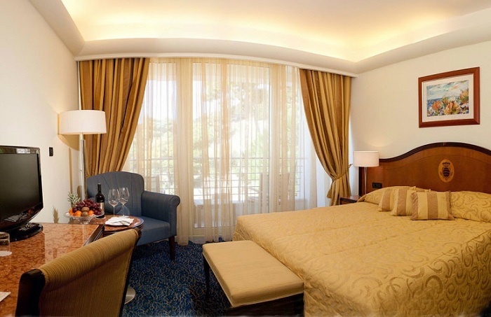 Executive Suite - эксклюзивный дизайн номера сочетает гармонию приморской роскоши с домашним комфортом. Номер состоит из 2-х двухместных спален с ванными комнатами, кабинетом, гостиной, гардеробной и террасой с видом на бирюзу Адриатики. Классический дизайн, тщательно подобранные цвета и детали фешенебельного номера создают гармонию настроений, которые делают Ваше пребывание незабываемым.
