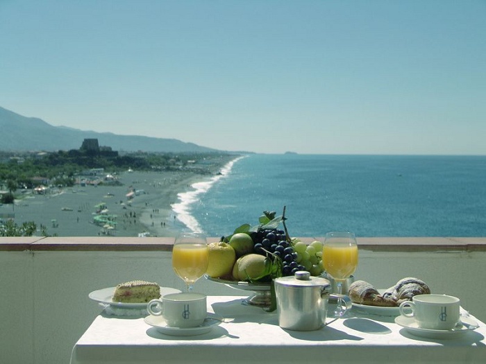 в престижном курортном городке Скалея, жемчужине Тирренского побережья, на самом берегу, в 500 метрах от центра города, в 2 км от ж/д вокзала Санта-Доменика-Талао, в 125 км от аэропорта Ламеция-Терме.