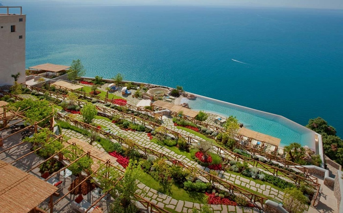 Monastero Santa Rosa Hotel & Spa - изысканный бутик-отель на Амальфитанском побережье Италии, ведущий свою историю с 1924 года и занимающий здание женского монастыря, построенного в конце XVII века. Архитектор Бьянка Шарма превратила монастырь, стоящий на вершине холма и парящего на закате, "словно крыло ангела", в роскошный бутик-отель. Толстые каменные стены, арочные окна, сводчатые потолки – все это создает неповторимую атмосферу. Вокруг отеля разбиты дивные сады. Каждый из номеров отличается уникальным дизайном и назван в честь одного из растений монастырского сада. Комнаты обставлены антикварной мебелью, которая сохранилась в монастыре или была специально куплена в Италии, на стенах висят старинные фотографии. Из окон открываются чудесные виды на сверкающие воды Солерно, ведь девиз Monastero Santa Rosa Hotel & Spa гласит: "в каждом окне – солнце, а из каждого окна – море…".Расположение отеля Monastero Santa Rosa Hotel & Spa: