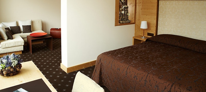 Alpine Junior Suite (50 кв. м) - шикарный номер на последнем этаже, состоит из гостиной с газовым камином, спальни, отделанной натуральным камнем ванной комнаты с ванной и отдельным душем, гардеробной, просторной террасы (20 кв. м) с потрясающими панорамными видами на долину, горы и озеро.