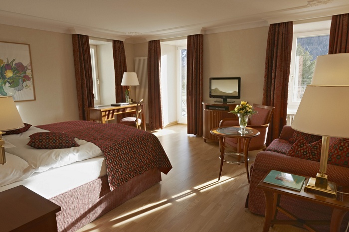 Светлые и просторные номера и сьюты отеля выдержаны в стиле "Энгадин": интерьер дополнен деревянными панелями и мебелью из сосны, растущей с этой части Альп. В течение нескольких лет, с 2004 по 2011 года, в отеле проводилась реновация интерьеров с применением новейших эксклюзивных материалов и современного оснащения. Некоторые номера могут соединяться между собой, что весьма удобно для семейного отдыха.