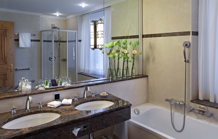 9 Double Standard Rooms (26 - 33 кв. м) - (западное крыло). Недавно отреставрированные номера, обставленные мебелью из изящной вишневой древесины, которая создает уютную атмосферу. Светлые бежевые ванные комнаты дарят функциональность и комфорт. Из окон открывается живописный вид на горы или внутренний дворик. Некоторые номера данной категории могут сообщаться с номерами категории Double Comfort Room.
