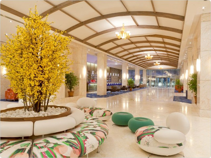 Пляж: собственный, песчаный, награжден "Голубым флагом", платформа, в 250 м от отеля. Между отелем и пляжем проходит променад. Зонты, шезлонги, матрасы, полотенца – бесплатно.