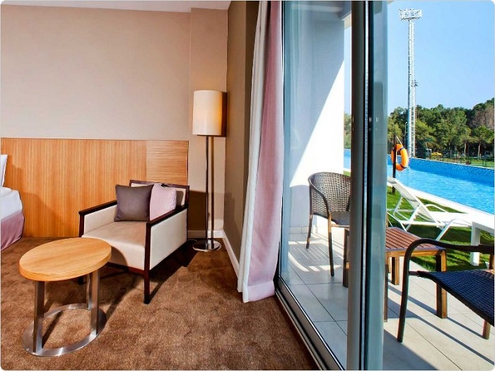 2 Champion Suites (83 кв. м) - двухэтажный номер. Состоит из 2-х спален (двуспальная и односпальная кровати), ванной комнаты с ванной и душем, балкона и террасы (с выходом в бассейн). Вид на бассейн.