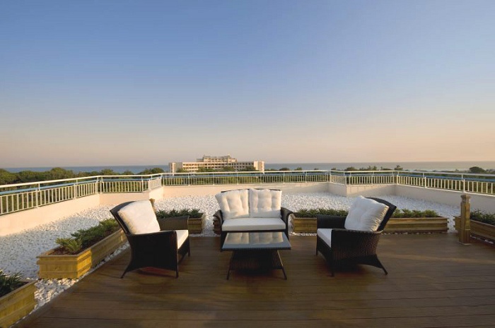 6 Terrace Suites (65 кв. м) - состоит из спальни с двуспальной кроватью, ванной комнаты с джакузи и душем, балкона, террасы. Вид на окрестности.