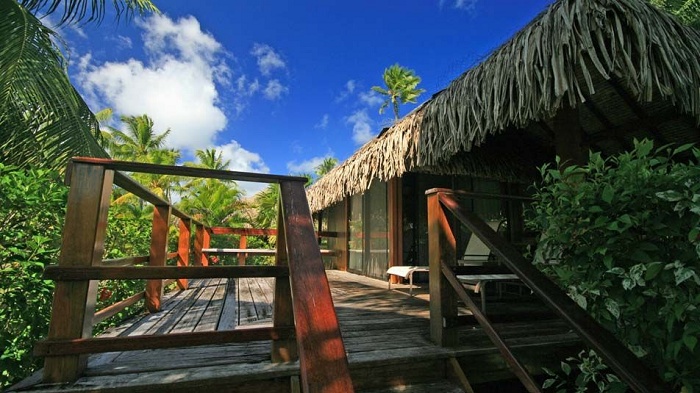 в юго-западной части острова Хуахин-Нуи, на берегу океана, в 15 мин. на катере от селения Fare. До Fare лучше всего лететь на самолете с острова Таити (перелет займет 35 мин.) Трансфер к отелю от селения Fare бесплатно.