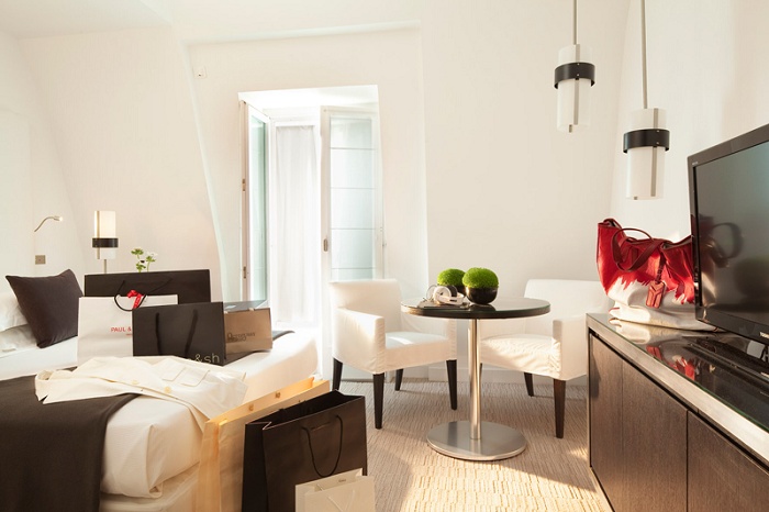 Apartment (35 кв. м) - состоит из спальни с кроватью king size, гостиной, мраморной ванной комнаты с ванной и душем, отделанной древесиной венге и черно-белой мозаикой. Расположены на верхнем этаже отеля. Вид на крыши столичных зданий и на знаменитую Эйфелеву башню.
