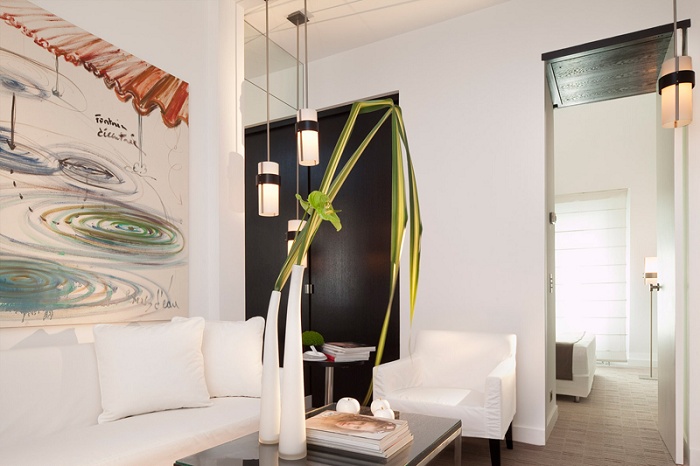 Hotel Le A - уютный и элегантный отель в центре Парижа, между проспектом Елисейские Поля и улицей Фобур-Сент-Оноре открылся в 2003 году и находится в парижском особняке XIX-го века с сохранившимся историческим фасадом и стеклянной крышей. Интерьеры Hotel Le A, разработанные дизайнером Фредериком Мешиш, создают необычную обстановку частного дома, наполненного современным шармом и атмосферой гармонии, роскоши и совершенства. Белоснежные стены и удобные кресла в тон контрастируют с черным деревом и темной обивкой диванов, стены, расписанные современными художниками, освещены мягкой подсветкой, наполненное светом пространство подчеркнуто продуманностью цвета и линий. В номерах, оборудованных по последним технологиям, стильные современные интерьеры в светлых тонах, обставленные элегантной белой мебелью, украшенные оригинальными светильниками и авангардистской живописью.Hotel Le A предлагает гармоничное сочетание оригинальных дизайнерских решений, современного уютного комфорта и прекрасного расположения в самом центре Парижа.
