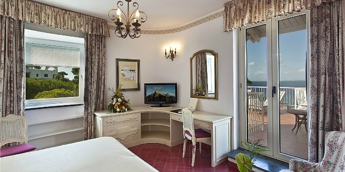 • Classic Tower Grand Suite – состоит из спальни, круглой формы с узким балконом, характерным для сарацинских башен, гостиной с отдельным входом из коридора, 2-х ванных комнат (душ и джакузи), меблированной террасы. Расположены на верхних этажах башни. Вид на море и рыбацкую деревню Иския Понте..