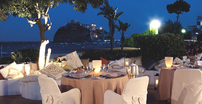 • The Restaurant - романтический ресторан с видом на море, интерьер которого отражает свежесть и деликатность окружающего морского пейзажа, предлагает богатый выбор региональных блюд в сочетании с разнообразными итальянскими и иностранными винами. На просторной террасе у моря можно отведать свежайшее мясо, рыбу, морепродукты, приготовленных на гриле.