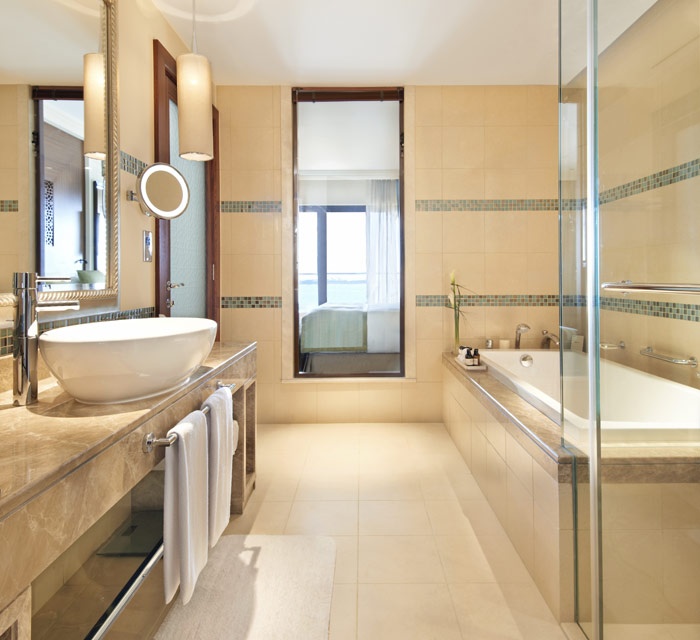 One Bedroom Suite (159 кв. м) - состоит из спальни с кроватью king-size, гостиной, ванной комнаты с ванной и отдельным душем, балкона. Возможно объединение номеров. Панорамный вид на Персидский залив, пляж, отель и Дубаи.