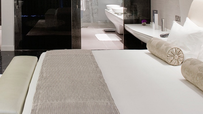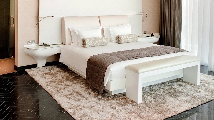 Deluxe Suite (100 кв. м) – состоит из спальни с кроватью king-size, гостиной, гардеробной, ванной комнаты с ванной и душем, гостевого туалета. Гостям предоставляются дополнительные привилегии. Расположены в главном здании. Вид на яхт-клуб или трассу Формулы-1. Макс. размещение - 3 взрослых или 2 взрослых и 1 ребенок.