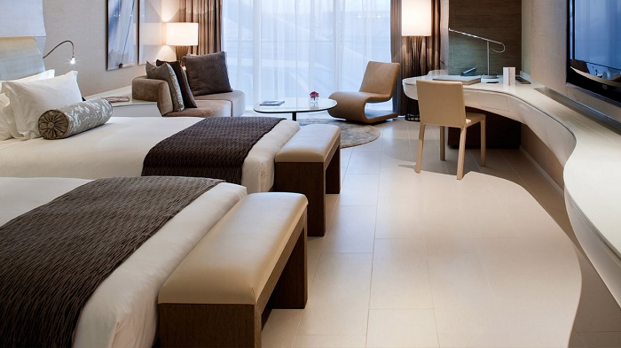 Deluxe Room (54 кв. м) - состоит из спальни с кроватью king-size или двух отдельных кроватей, гостиной зоны, ванной комнаты с ванной и душем. Вид на яхт-клуб или трассу Формулы-1. Макс. размещение - 3 взрослых или 2 взрослых и 1 ребенок.