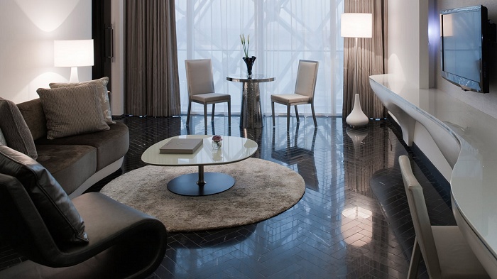 Marina Deluxe Room (54 кв. м) – состоит из спальни с кроватью king-size или двух отдельных кроватей, гостиной зоны, ванной комнаты с ванной и душем. Вид на яхт-клуб, трассу Формулы-1 или территорию отеля. Макс. размещение - 3 взрослых или 2 взрослых и 1 ребенок.