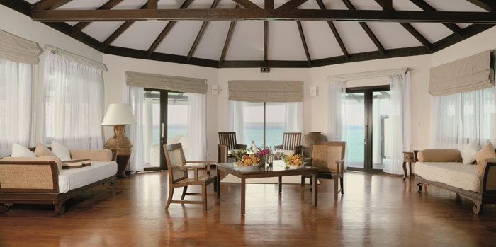 Water Suite (270 кв. м) - состоит из спальни с кроватью king-size, гостиной, ванной комнаты с джакузи на двоих и зоной отдыха, террасы с бассейном и выходом к океану. Расположены на сваях над водой. Вид на океан. Макс. размещение - 4 взрослых и 2 ребенка.