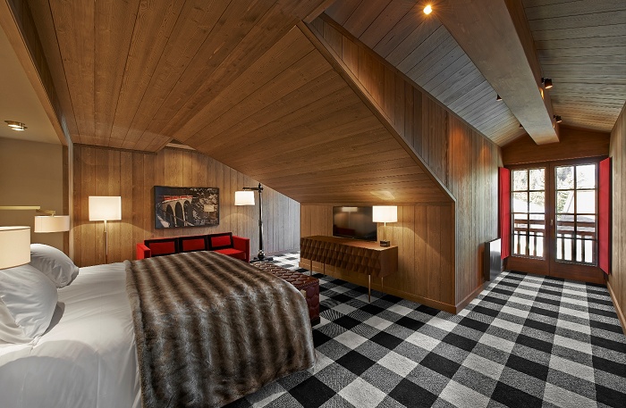 Chalet L’Amarante (525 кв.м) - пятиэтажное шале Amarante примыкает к зданию отеля. Шале имеет отдельный вход, а так же прямой доступ к трассам. Шале располагает 5 просторными спальными комнатами, столовой и мини Spa-центром, который включает сауну, джакузи и массажную комнату на двоих. К услугам гостей – личный повар и батлер. Главный вход в шале ведет на 3 этаж здания (общая площадь этажа 97 кв м), где расположены прихожая с лифтом, соединяющим все этажи здания, кухня, столовая и салон. На четвертом этаже расположены 2 спальные (каждая площадью 50 м) с отдельными гардеробными и ванными комнатами. Одна из ванных комнат оборудована хаммамом. На верхнем мансардном этаже шале расположена одна спальная с отдельной ванной и гардеробной комнатой. На нижних этажах расположены еще 2 спальные (каждая так же площадью 50 кв м), с гардеробными и ванными комнатами, а так же домашний кинозал с игровыми приставками.