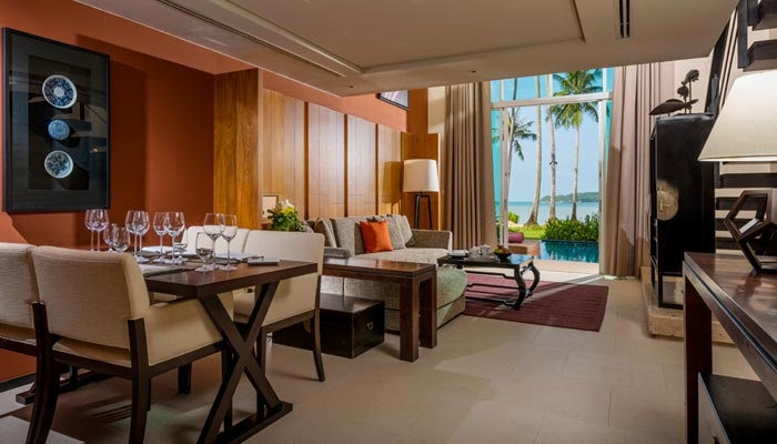 Andaman Loft Pool Suite (100 кв. м) - двухэтажный номер. Состоит из спальни, гостиной, ванной комнаты с джакузи и душем. Доступ к зоне бассейна. Вид на море.