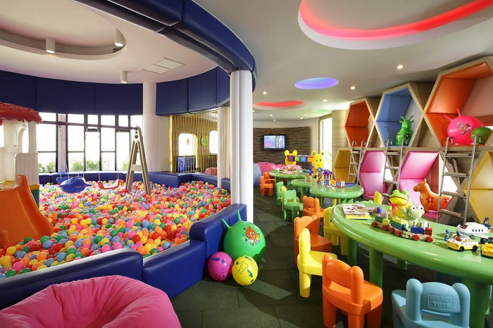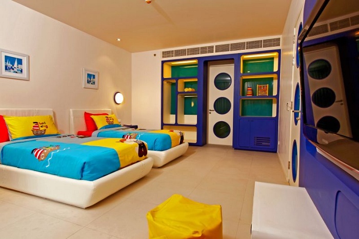 - Kid's Suite (69 кв. м) – состоит из 2-х спален (одна - с двуспальной кроватью, вторая – с двухъярусной кроватью), ванной комнаты, балкона/террасы. Вид на сад. Макс. размещение – 2 взрослых и 2 ребенка.