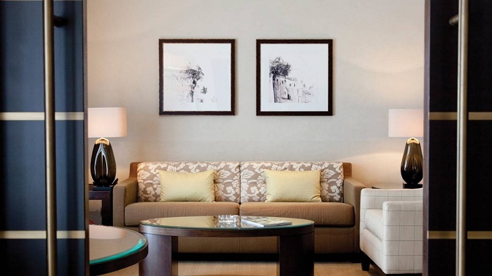 • Deluxe Suite (72 кв. м) - терраса, гостиная с обеденной зоной (стол на 4 персоны), спальня с кроватью king-size, гардеробная, 2 ванные комнаты (одна – с ванной и душевой кабиной с функцией "тропический дождь", вторая – с душевой кабиной). Находятся на первом, втором и третьем этаже. Вид на территорию отеля, горы и сад Менара. Максимальное размещение – 3 взрослых или 2 взрослых + 2 ребенка.
