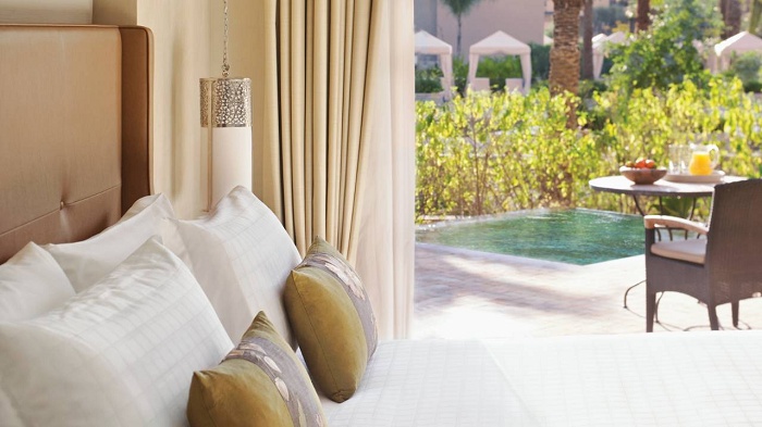 • Premier Room (42 кв. м) - терраса, спальня с кроватью king-size или двумя отдельными кроватями, гардеробная, ванная комната с ванной и душевой кабиной с функцией "тропический дождь". Находятся на 3 и 4 этаже. Вид на территорию отеля и горы или сад Менара. Максимальное размещение – 3 взрослых или 2 взрослых + 1 ребенок.