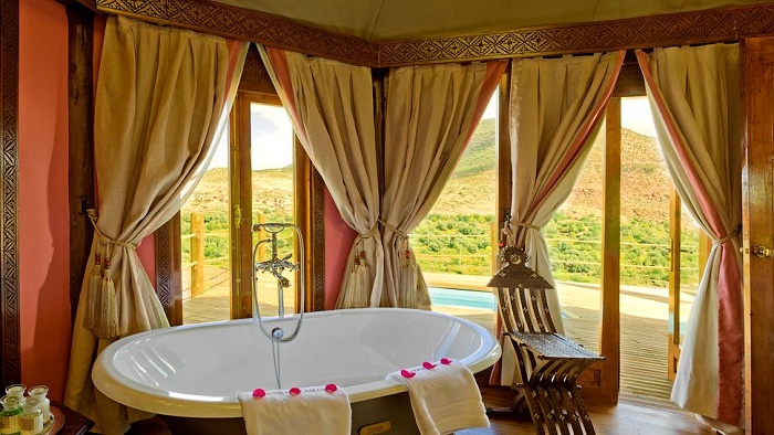 9 Berber Tents - отдельно расположенный шатер в берберском стиле, включает спальню с кроватью king-size, гостиную зону, ванную комнату с большой ванной, террасу с панорамным видом на горы. В некоторых номерах есть джакузи.