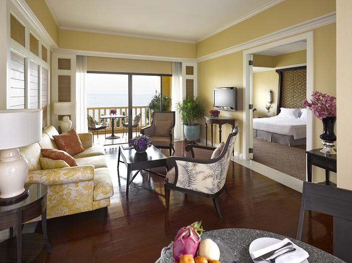 Dusit Suite (84 кв. м) - находится недалеко от пляжа, состоит из спальни, гостиной с обеденной зоной, мини-кухни, ванной комнаты с двумя раковинами, роскошной овальной ванной и отдельной душевой кабиной, гостевой туалетной комнаты, террасы с видом на море. Дополнительно в номере – DVD player. Гости номера имеют доступ в Dusit Club Lounge. Также, дополнительно: ежедневный выбор легких закусок и освежающих напитков с 11:00 до 19:30. Напитки перед ужином (в том числе и домашние вина, пиво, спиртные напитки и коктейли). Выбор ежедневных местных и международных газет и журналов, эксклюзивный клубный завтрак, прачечная и химчистка бесплатно, бесплатные местные телефонные звонки, бесплатные процедуры в Spa - центре, один бесплатный трансфер от Хуа Хин, бесплатное пользование услугами фитнес-центра, бесплатное пользование компьютерами в Dusit Club Lounge.