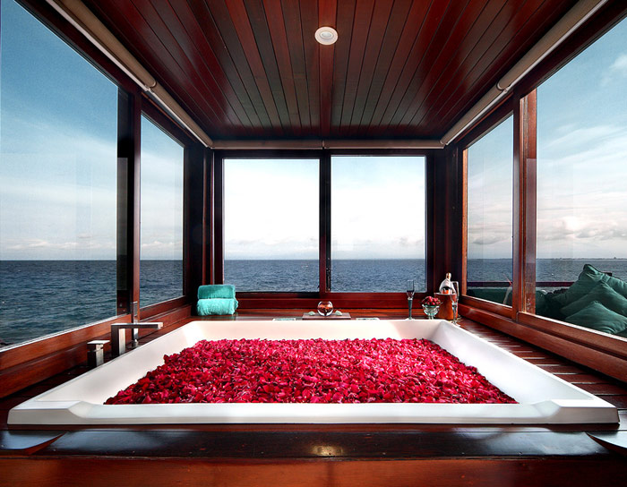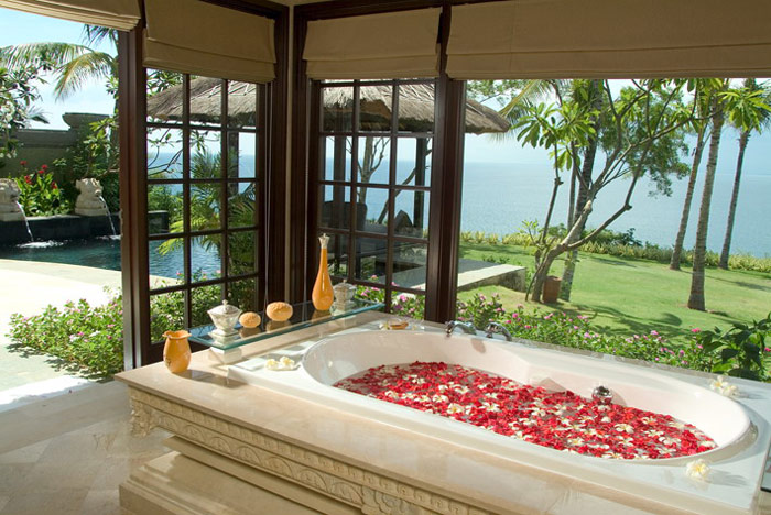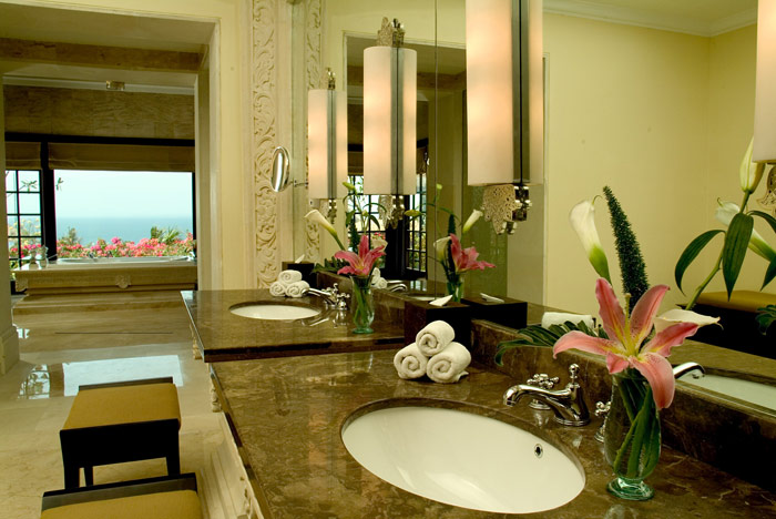 Важнейший принцип во внутреннем убранстве и планировке каждой из вилл – максимум света и свободного пространства. В оформлении вилл используются натуральные сорта древесины, резьба по камню, выполненная балийскими мастерами, украшает спальню и другие помещения виллы. Ванная комната на каждой вилле – предмет особой гордости дизайнеров: просторная комната, занимающая почти половину виллы, располагает помимо традиционной ванны и отдельного душа, еще и зоной для релаксации, откуда также открывается вид на Индийский океан.