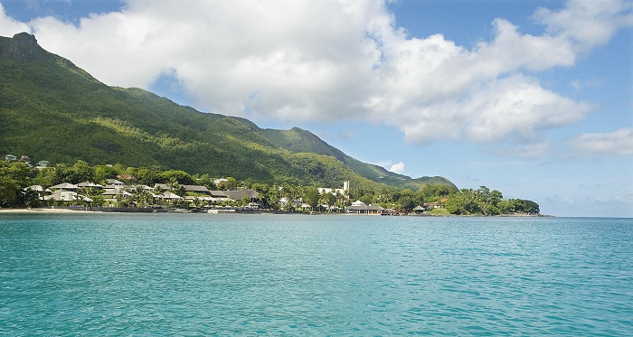 на острове Маэ в 30 минутах езды (20 км) от аэропорта, в 10 минутах езды от столицы Сейшельских островов, Виктории, самой маленькой столицы в мире, на пляже Бо Валлон (Beau Vallon Bay).