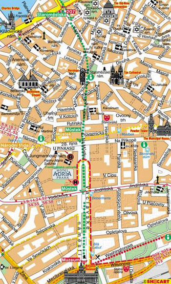в самом сердце Праги, рядом с тенистым Францисканским садом. Все заслуживающие внимания достопримечательности города находятся всего в нескольких минутах ходьбы.