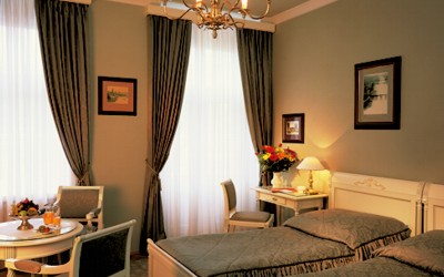 Historical Suite (площадь 35 кв.м, роскошная мебель в стиль ампир, две комнаты, спальня с кроватью королевских размеров, мини-бар, сейф, рабочий стол с настольной лампой, телефон, ТВ (31 канал), фен, ванна, электронный ключ, двустворчатые окна, кондиционер, противопожарная сигнализация)