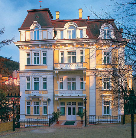 Один из самых шикарных корпусов прекрасного комплекса SPA BRISTOL (Bristol Palace, Kralovska Vila и Villa Tereza). Находится в центре курорта посреди прекрасного парка. Был полностью реконструирован в 1999 году.Адрес: Zamecky vrch.