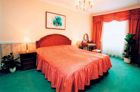 в центре курортной зоны Карловых Вар, на набережной, в 5-ти минутах ходьбы от источников.