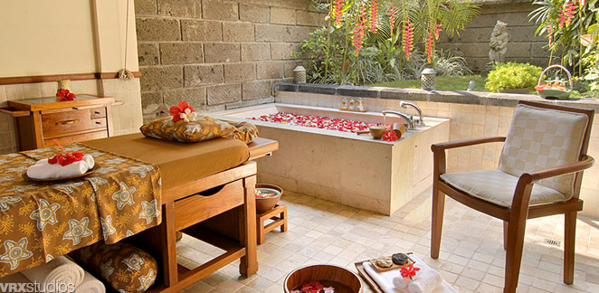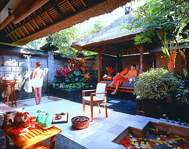 SPA-центр размещен в нескольких отдельных виллах и открытых павильонах. Крыши из иланг-иланга, каменные изваяния, выполненные местными умельцами, и традиционный дизайн SPA прекрасно гармонирует с шикарным садом, окруженным стройными пальмовыми деревьями. Центр задуман как убежище для утомленных странников, для деловых людей с напряженным ритмом жизни или для влюбленных пар, как место, где можно омолодить тело и душу при помощи ароматерапии и массажных процедур. Теплые благоухающие масла, нежная музыка в окружении пышной растительности успокоят Ваши чувства и мысли.