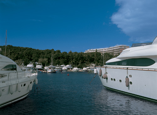 в бухте Вульягмени, на берегу Саронического залива, в 25 километрах от центра Афин и недалеко от Афинского международного аэропорта.