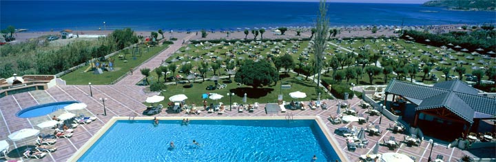 на юго-восточной стороне острова Родос, в 14 км от г. Родос и в 1 км от молодежного центра Фалираки. Удачный выбор для семейного и молодежного отдыха. Отель окружен садом с финиковыми пальмами.