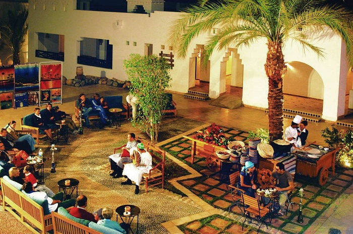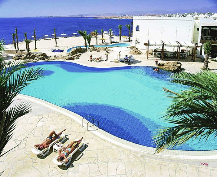 | НЕ ВЗДУМАЙТЕ ЕХАТЬ!!! Отдыхал март апрель 2008. Офигевший отель!!! (это ооочень мягко сказано). Как я понимаю топ менеджером отеля поставлена задача персоналу что бы туристы как можно меньше сьели и выпили. Что они с успехом и делают. Есть нечего, нет на столах конечно много чего стоит, но некоторые вещи я не видел со времен своего студенчества в студенческой столовой (так что если у кого ностальгия милости прошу) Думал порубаю салатиков и мяса, рыбы, но не тут то было. Курица или говядина, что то одно, и их шедевр - печенка говяжья. Корова точно умерла своей смертью. Из салата можно есть только порубанные топором помидоры, остальное чечевица с чем то и тому подобное стоит для украшения стола. А были еще макароны по флотски!! Про то что чашек не хватает для чая и кофе даже говорить не надо, а то много чая выпьют. Зубочистки по одной на лицо по выдаче. Поесть вы взяли , а теперь нужно найти место где сесть, нашли , тогда ищите инструмент.Столы убирать не особо принято. Можете позвать официанта, если он вдруг подойдет, скажите что вы хотите, и немедленно ищите следующего, повторите свою просьбу. Проделайте эту операцию минимум 3 раза. Принесли? Хорошо, ешьте быстрее, потому что тарелку скоро со словами Finish? у вас отберут. Хотите вечером поужинать на улице, приходите за час до ужина , тогда может быть найдете столик. У отеля свой взгляд на систему все включено, хотите нормально поесть идите в арабский ресторан или рыбный , но за отдельную плату. Крепких алкогольных напитков местного производства нет и в помине, так что везите с собой. Стопка текилы 8 долларов. Банка пива 5.Свой алкоголь нельзя выставлять на стол под угрозой штрафа в 200 долларов. Заказали вечером 10 стопок текилы, прождали 20 минут, позвали менеждера, он пришел спросил какие проблемы, сказал сейчас все будет ОК и ушел, больше мы его не видели. Еще через 20 минут принесли текилу, 8 стопок разного калибра, подождали пока выпьем и принесли еще 2. Мы пропили по еще одной путевке каждый. Поели попили , идем на пляж. Пляж полное гавно!Помойка с камнями. Бассейны очень хитро расположены, так что их придется поискать. У моря 1 детский мелкий бассейн, и толпа народу около него, а если подняться с пляжа чуть повыше направо или на лево, 2 нормальных бассейна, правда там почти нет лежаков, но на бортике совсем не обламывает сидеть. Бар на пляже отдельная тема! Очередь в 15 - 20 человек это нормально. В баре только пиво или соки в пакетиках. Пиво в 200г пластиковых стаканчиках, причем половина это пена.1 мороженное в 1 руки. Ну а бармен толстожопая скотина, простот умиляет Вас, когда отстояв очередь, говорит Вам, что больше 3 стаканов в одни руки он не дает. И предлагает встать еще раз. (красавец, вы его обязательно узнаете) Но самый шедевр это гамбургеры!!! Это булочка размером с полпачки сигарет (кроме шуток) , в которой пальцем сделана дырка (клянусь) и засунута скомканая колбаса, как вариант это сыр или фарш. Увидеть это чудо нам удалось только 1 раз, и то с боем. Толстожопая скотина никак не хотела нам их отдавать. Пляж в 2-3 уровня, напоминает Анапу 80 годов. Старые лежаки, но и их надо быстренько с утра занять, бросив полотенце. Да кстати полотенце выдают по именным карточкам, только в 2 местах. И как сказал Даун который этим заведует, в день можно брать только одно полотенце, и менять его ни в коем случае низя! Штраф за утерю карточек 5