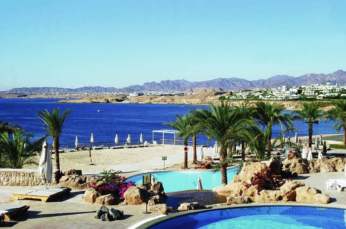на самом берегу моря, в заливе El Paсha Bay, в 6 км от бухты Naama Bay, в 10 км от аэропорта.