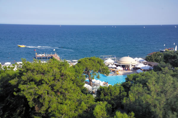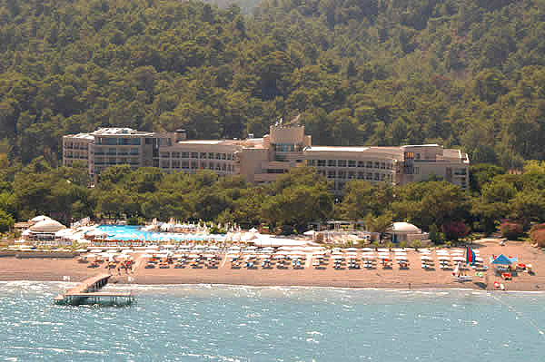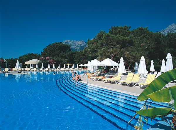 Привет всем! Я отдыхала с семьей в этом отеле в июне 2009 года. Если честно, то ехали мы туда с некой опаской: предварительно прочитали несколько отрицательных отзывов. Путевка была недешевая, омрачать отпуск плохими мыслями мы не хотели и, несмотря ни на что, выбор был сделан и оставалось лишь надеяться на лучшее. И это "лучшее" оказалось просто великолепным! Я настолько "влюбилась" в этот отель, что каждый день (а их было 15) мне приносил только положительные эмоции. Не могу назвать ни одного минуса, всё настолько было здорово!!! Номер нам попался очень хороший, как я и хотела - с видом на горы!!! Мы частенько вечерком сидели на балкончике,попивали винцо с фруктиками и любовались природой! Вид - потрясающий! Сразу предупреждаю - не стремитесь брать номера с видом на море. Это не совсем приятно для тех,кто хочет ночью поспать: (дискотеки и всевозможные гулянья до утра по территории).Некоторые жаловались на комаров. Ничего не могу сказать, у нас их не было, хотя фумигатор мы с собой взяли (так,на всякий случай). Мини-бар в номере пополняют соками ежедневно,да и водой тоже. Уборку номеров производят постоянно,без каких-либо чаевых, иногда даже слишком навязчиво. Приходилось вешать на дверь табличку "не беспокоить". На умывальник ставят гель для душа,кондиционер для волос,лосьон для тела,круглое мыльце,ватные палочки в упаковке,и расческу в картонной коробочке. Я была приятно удивлена!!! Мебель новая, не пошарпанная. Кондиционер работал отлично, на ночь мы его выключали, так как было в комнате уже прохладно (мы оставляли работающий конд-ер на весь вечер). Вобщем, размещение понравилось. Не пришлось "переплачивать" за переезд в другой номер, чем многие занимаются на протяжении всего своего отдыха. Да,чуть не забыла: сейф в номере -бесплатный! Кстати,мы ехали через "Пегас". Многие мои знакомые не совсем лестно отзываются об этой фирме. Это меня тоже насторожило. Но гид в отеле - это очаровательная девушка Маргарита, развеяла все мои опасения. Она настолько приветлива, ненавязчива, абсолютно не напрягала экскурсионными турами, что хотелось просто подходить к ней и общаться. Кстати, она находится в отеле ежедневно,до 18 часов (в отличии от гидов других турфирм).И по многим вопросам можно обратиться к ней за советом или помощью. Еще очень приветливая и доброжелательная русская девушка Резеда на ресепшен.К счастью, она работает почти каждый день, и любые вопросы быстро решит. Остальные не понимают русский язык,или просто делают вид,что не понимают. Сам отель красивый, территория прекрасная,зеленая, растут и пальмы, и сосны, и цветы всевозможные. Воздух - обалденный!! Морской+горный+сосновый!!! Незабываемо! Вода в бассейне-чистейшая,лежаков хватает всем: хоть на море,хоть у бассейна. Ребятне очень нравится кататься на водных горках. Детьми занимаютя аниматоры. Постоянно что-то выдумывают,развлекают. Можно поиграть в мини-гольф. Прикольно даже взрослым. Питание.Это отдельный разговор...Удержаться от такой вкусноты невозможно! В отзывах все пишут:"кура,кура.." Ничего подобного!!! Кроме куры в большом ассортименте всегда было мясо:язык,баранина,телятина,ягненок,а про шашлык я и вовсе молчу. Почти каждый вечер мы наслаждались прекрасным шашлыком. На огне всегда что-то жарят: это или стейк,или шашлык, или шаурма,или рыбу,или курицу. Вобщем, объедались мы "по полной". Никогда 