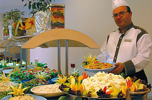 | Может кому поможет. Отдыхали dbl 01.06-08.06.08 40 тыр игого. Как сказали "знающие" и опытные люди отель не тянет на заявленные звезды. И понятие ультра ол инклюзива несколько специфично. Однако, территория оч зеленая, ухоженная. Пляж как пляж: галька, шезлонги, большая часть пляжа - понтон с него удобно спускаться (но не прыгать), кусок галечного пляжа. Номера небольшие, аскетичные, но убираются и ванная комната в порядке. Правда 2 последних дня нас обламывали с положенным соком, но невелика потеря. Нам полагался номер с no balcony, но буквально $50 изменило эту несправедливость. Нам достался 4 этаж главного здания с видом на бунгало (внизу) и расчудесным видом на горы (справа), слева территория, зелень и чуть моря, номер 4364 кажись. Мы заходили в бунгало нам не понравилось - но это на любителя. По поводу расхожего мнения о кормежке: при желании можно было найти че-нить съестное. Осталось ощущение, что мы постоянно жрали. Местное пиво efes pilsner пить можно, что мы и делали, тем более всегда холодное. Алкоголь в основном местный (своеобразный UAI), из импортного бухла удалось урвать тока ром, местный коньяк napoleon chevalier тоже ничего. Еще были виски, джин (какой-то специфический вкус), водка и, канеш, ракы. Водка вроде не оч на вкус, но от нее ничего не болело потом. Особо радовал бармен во время дискотеки Fatih. Коктейлями из местных напитков можно было просто упиццо. Порадовал ресторан a la carte турецкой кухни. Во время полдника (перерыв между обедом и ужином) кормили пиццой и донарами (нереально острые). Фрэшей бэзплатно там нет. Некоторые работники знают русский язык, аниматоры - все. Постоянно че-то устраивали: волейбол, водное поло, тир, дартс и тп. По вечерам шоу-программа, потом дискач для старперов с живой музыкой, а потом и дискач для тех кто еще способен двигаться. Детей там анимировали по-моему на убой целый день. Рядом за территорией отеля холмик, покрытый деревьями. Мы себя развлекли тем, что забрались на него. Немцев было мало, престарелые в основном, зато заезжали местные просто так и на какую-то конференцию. В общем, арам-зам-зам нам понравилось. PS Автобус в аэропорт задержался на 45 минут. Нельзя так с русскими туристами. Посошок удался на славу. |